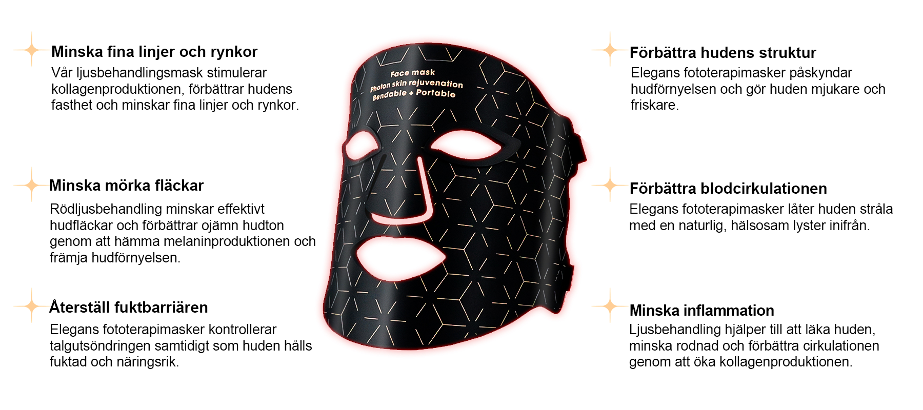 Eleganse LED-mask är din dagliga hudrevitaliserare och pålitliga skönhetskompanjon som ger dig professionell hudvård hemma.